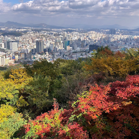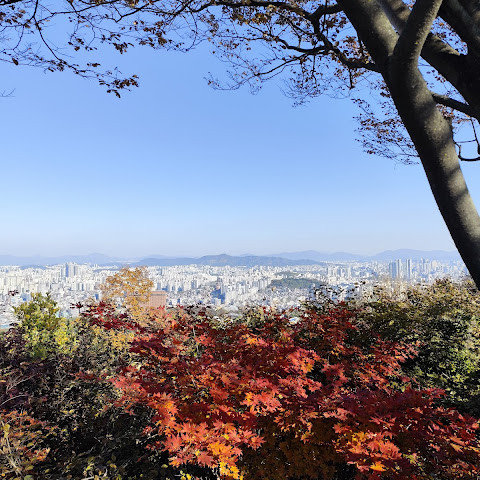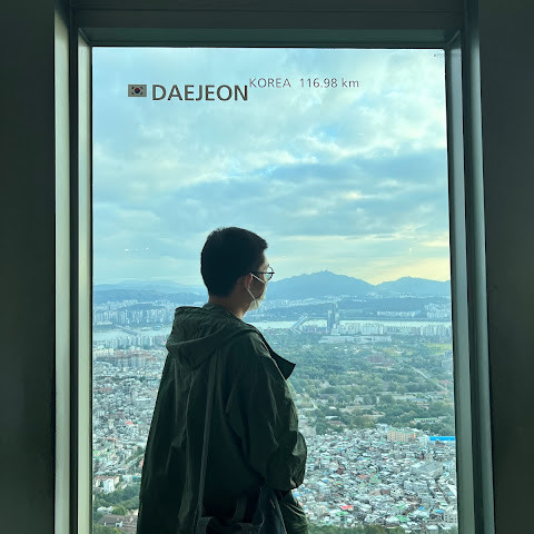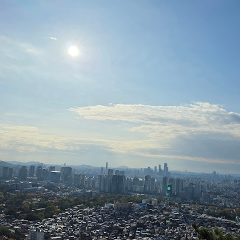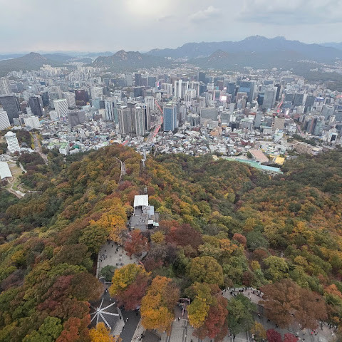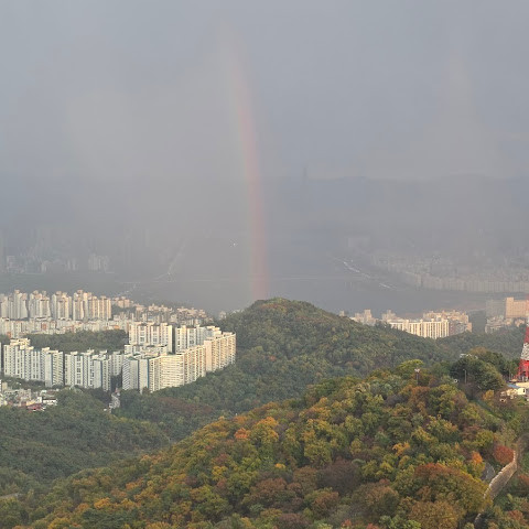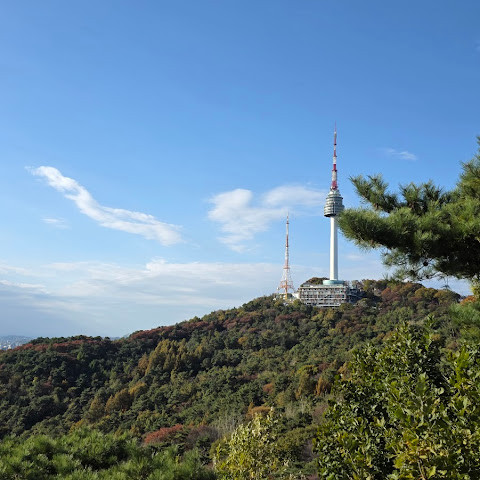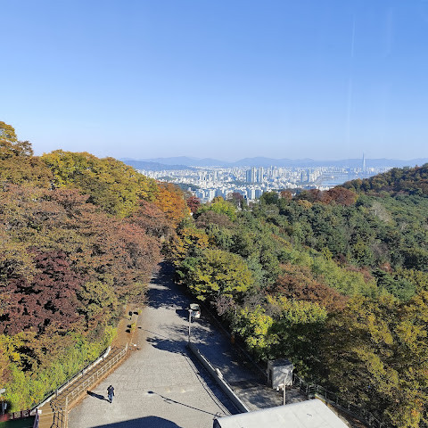 여기서 잠깐 하이킹을 하면서 높은 곳에서 서울을 내려다보는 건 정말 즐거운 경험이었어요. 이 타워 정말 좋아요.
