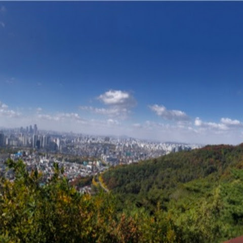 버스 정류장에서 10분 정도 올라가면 됩니다. 꼭대기에서 서울의 아름다운 전망을 감상하실 수 있습니다.