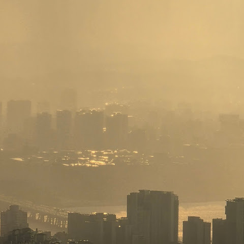 화창한 날씨이긴 한데 먼 곳은 흐릿하게 보이지만
