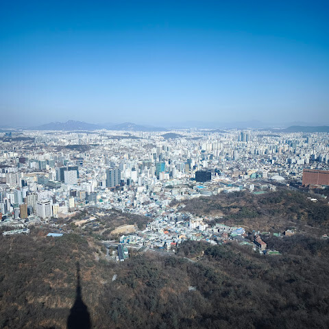 타워 꼭대기에서 바라보는 서울의 아름다운 전경. 서울을 방문하는 관광객이라면 꼭 사진을 찍어야 할 명소입니다.