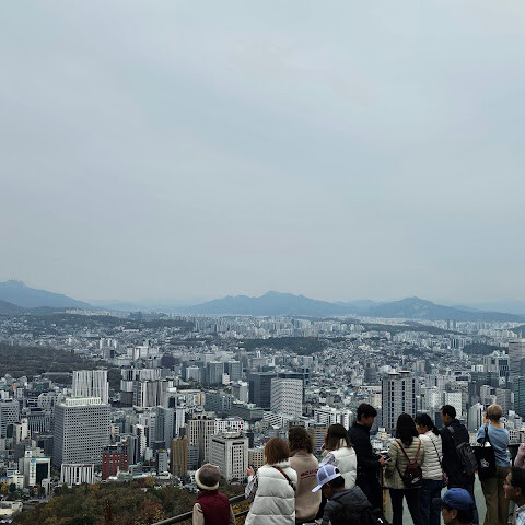 우리나라 대표의 명소 서울 타워 👍 k-POP 데몬 헌터스 OST가 흘러나오는 서울 타워에서는 주말이라 외국 관광객들도 아주 많았고 , 와인행사도 해서 여기저기 웃음꽃이 피고 있더라고요 ㅎㅎ 너무 이쁜 서울 전경을 보고 싶었는데 화창한 날 다시 남산에 와야 할 것 같아요💕❤️😄