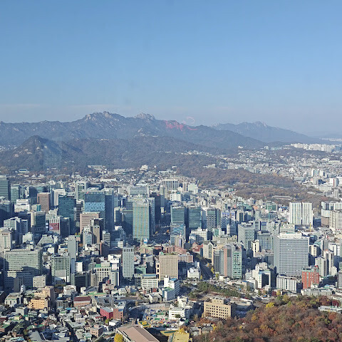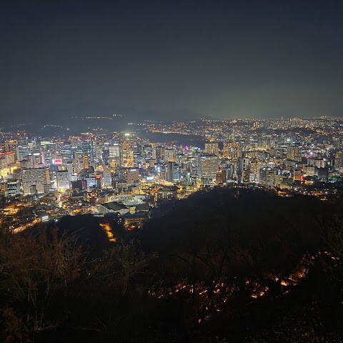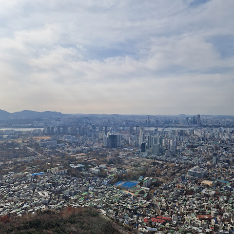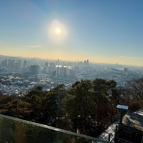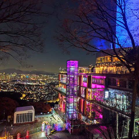 언덕 꼭대기에서 광활한 서울의 멋진 전망을 감상하세요. 케이블카를 타지 않고 걸어서 올라가는 경우, 64층 계단을 오르는 것과 같은 효과를 낸다는 점을 미리 알려드립니다.
