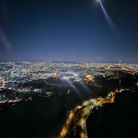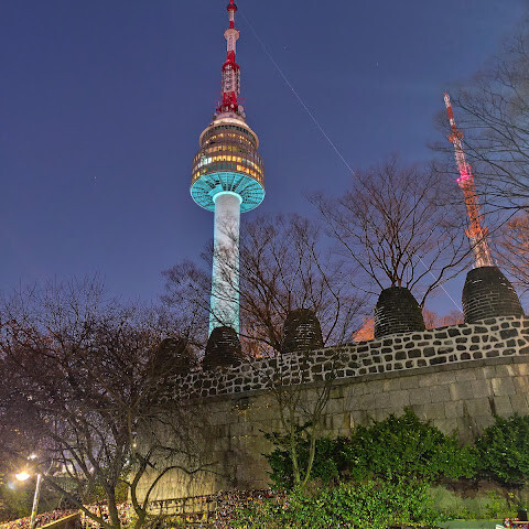 이곳은 한국에서 가장 상징적인 장소 중 하나입니다. 또한, 이 투어는 낮과 밤에 모두 진행되어 완전히 다른 경험을 선사합니다. 처음 방문하는 분은 낮에, 다음 방문 시에는 밤에 방문하세요. 케이블카, 시내버스, 택시, 그리고 걸어서 정상까지 올라가는 여러 가지 방법이 있습니다. 버스를 타고 올라간 후 명동으로 내려가 케이블카를 타고 야시장을 구경하는 것을 추천합니다.