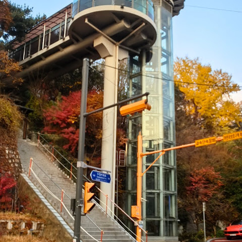 케이블카에 도착하기 전에 "남산 오르미"라는 무료 경사 엘리베이터를 타고 케이블카역까지 이동할 수 있습니다.