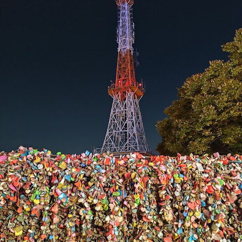 꼭 봐야 할 곳. 멋진 전망. 물론, 자물쇠는 꼭 채우셔야 해요. 저는 밤에 갔는데 정말 멋졌어요. 마음만 먹으면 걸어서 올라가거나 내려올 수 있지만, 타워에 가는 가장 쉬운 방법은 회현동에서 출발하는 남산 케이블카를 이용하는 것입니다. 케이블카는 정기적으로 운행되며 남산역까지 3분밖에 걸리지 않습니다. 그곳에서 조금만 걸으면 남산타워에 도착합니다.