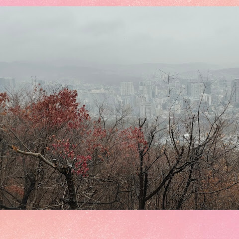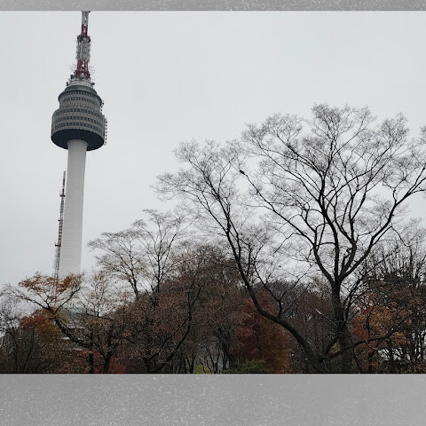 11월 말, 서울타워에는 비가 내려서 습하고 추웠으며 사람도 별로 없었습니다.