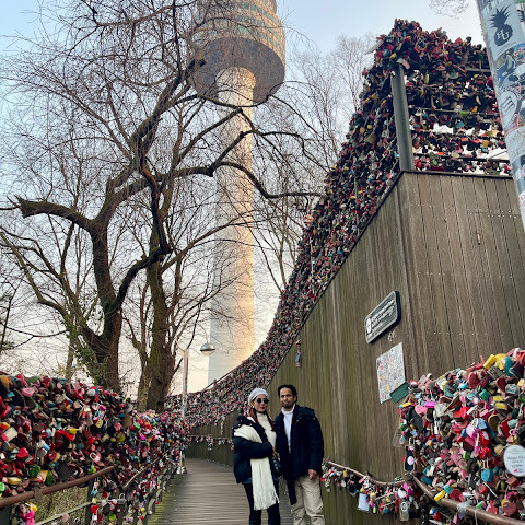 가을에는 날씨가 엄청 춥기 때문에 두꺼운 옷을 꼭 입으세요. 꼭대기에 있는 가게에서 사랑의 자물쇠를 살 수 있는 공간이 있는데, 거기서 높은 탑을 가까이서 볼 수 있어요. 저희는 20~30분 정도 걸어서 올라갔어요. 아니면 버스나 케이블카를 타고 올라가는 게 더 편해요.