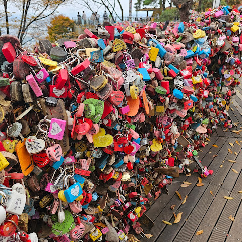 남산 서울타워에 가시면 역시나 사랑의 자물쇠 하나씩 걸어두고 오시는데, 저도 구 여친 현 아내와 언젠가 걸어놨던 자물쇠가 어딘가에 있을 겁니다.