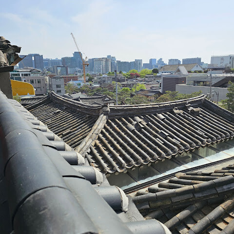 기와지붕이 층층이 겹쳐진 북촌한옥마을, 그 사이로 빨간 벽돌 건물과 현대식 건물이 나란히 어깨를 맞댄 모습이 참 인상적입니다. 전통과 현대가 다투지 않고, 서로를 품은 채 정답게 살아가는 모습에서 묘한 위로를 받았습니다. 여름 햇살을 머금은 기와는 더 깊은 색으로 빛나고, 틈새로 스며드는 바람에는 오래된 골목의 향기와 정취가 묻어납니다. 골목마다 켜켜이 쌓인 시간이 발걸음을 느리게 하고, 지붕 위로 흐르는 하늘은 조용히 이야기를 들려줍니다. 사진 한 장에도 시간이 머무는 듯한 이곳, 북촌한옥마을에서는 오래된 것의 미덕과 지금 이 순간의 소중함을 함께 느낄 수 있었습니다.