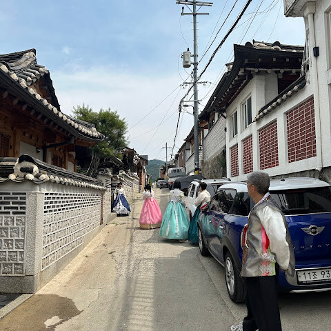 길을 돌아 나오며 기와지붕 위로 번지는 노을을 바라보았다. 따뜻한 빛이 한옥과 현대 건물을 함께 물들이고 있었다. 북촌한옥마을, 그곳에서 나는 시간을 초월한 어깨동무를 보고 왔다.