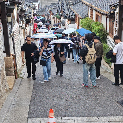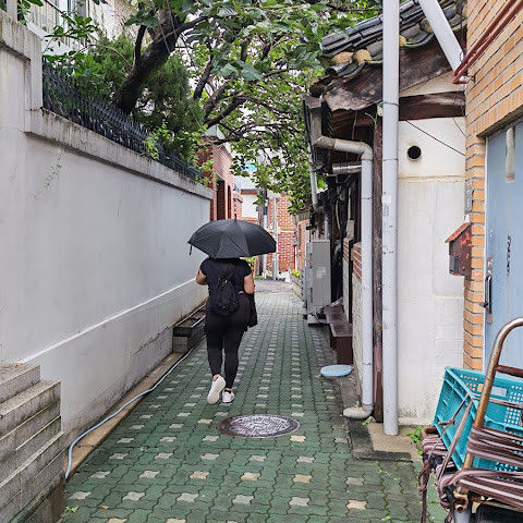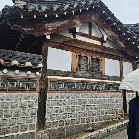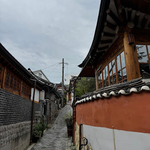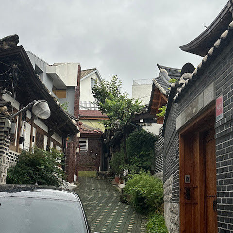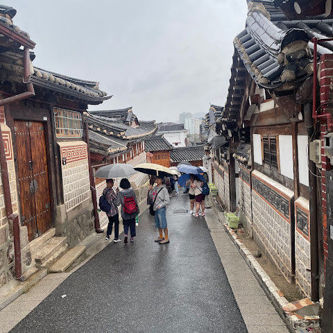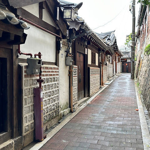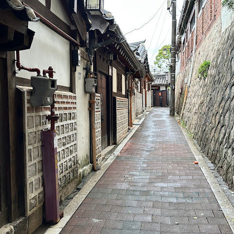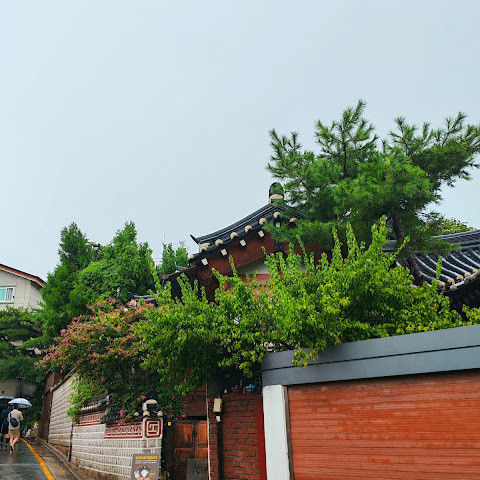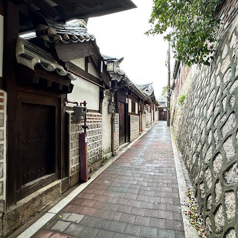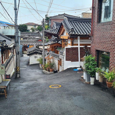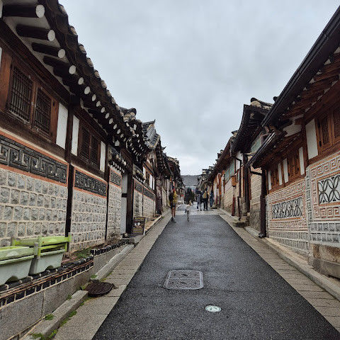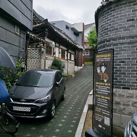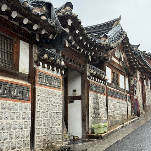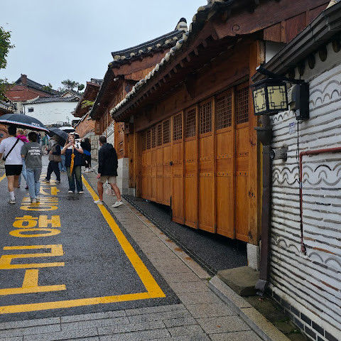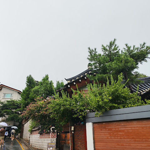 방문 당일에는 비가 왔지만, 북촌 한옥마을을 처음 탐험하는 기분은 정말 상쾌했습니다. 조금 길을 잃었어요😂 — 주요 명소는 큰길에서 조금만 걸어가면 되는데, 표지판이 명확하지 않아서 결국 언덕을 오르내리고 골목길을 몇 개 지나야 했어요🥲. 그래도 분위기와 전통 한옥은 아름답고 꼭 방문할 가치가 있어요!