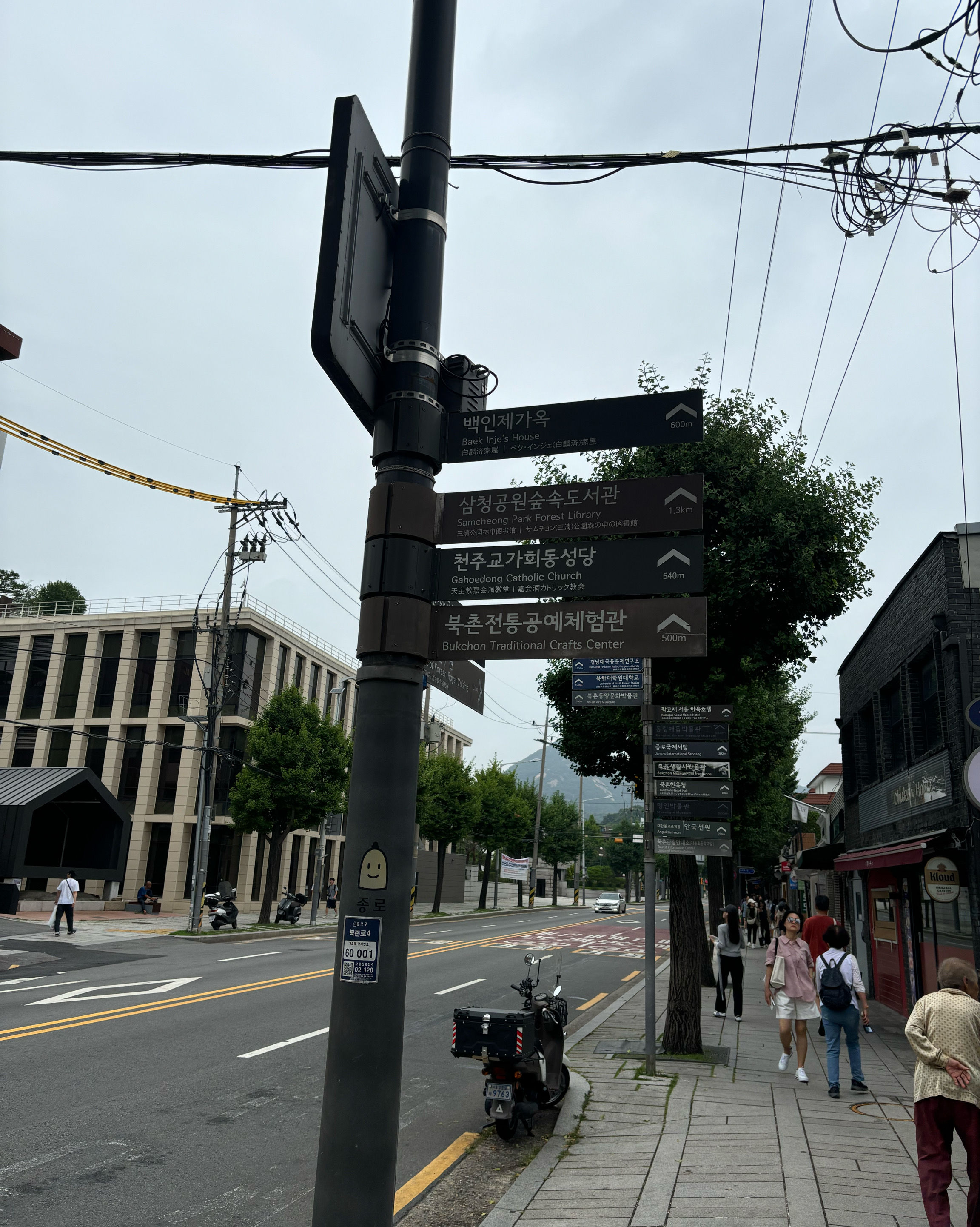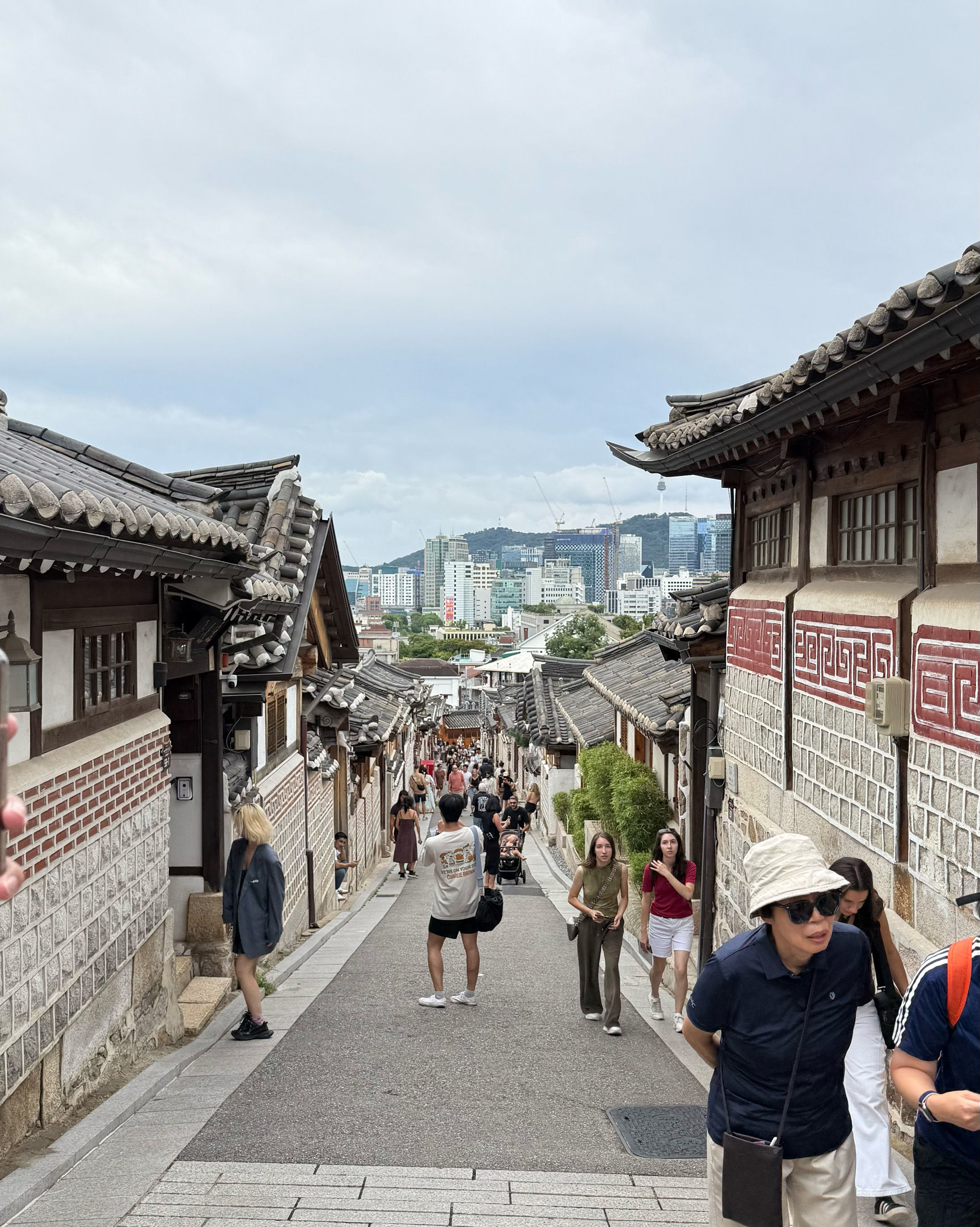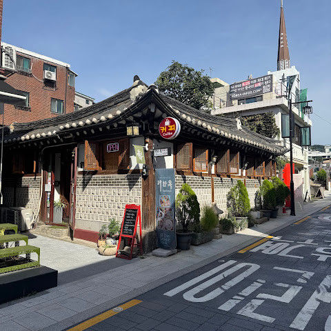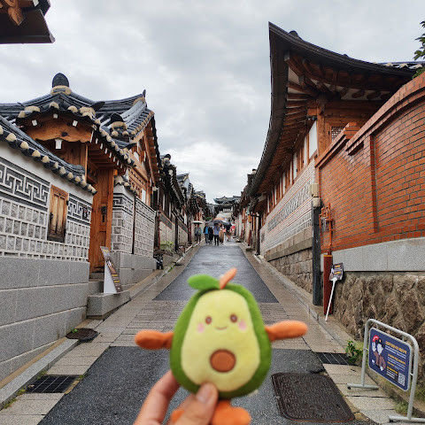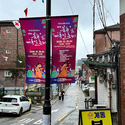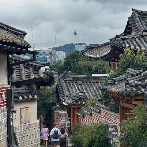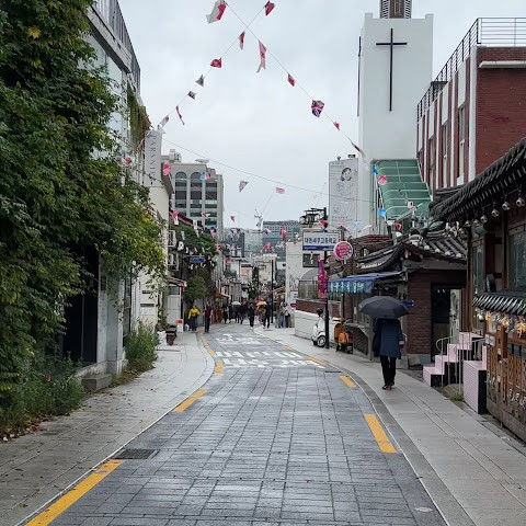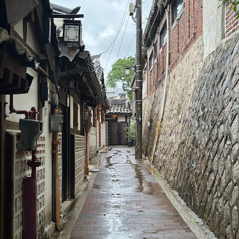 방문 당일에는 비가 왔지만, 북촌 한옥마을을 처음 탐험하는 기분은 정말 상쾌했습니다. 조금 길을 잃었어요😂 — 주요 명소는 큰길에서 조금만 걸어가면 되는데, 표지판이 명확하지 않아서 결국 언덕을 오르내리고 골목길을 몇 개 지나야 했어요🥲. 그래도 분위기와 전통 한옥은 아름답고 꼭 방문할 가치가 있어요!