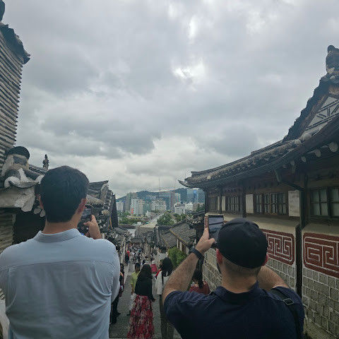 북촌 한옥마을 방문은 정말 즐거웠습니다. 관광객이 몰리는 곳이라 한때 전통 한국 마을이었던 곳이 이제는 비싸고 트렌디한 카페, 한국식 바비큐 레스토랑, 기념품 가게들로 가득 차 있는 게 안타깝다고 말하는 사람들도 있을 겁니다. 하지만 저는 오히려 그런 점이 북촌 한옥마을의 흥미로운 분위기를 더한다고 생각했습니다. 좁은 골목길을 거닐다 보면 옛 전통 마을의 모습을 엿볼 수 있었습니다. 일부 상점과 카페는 개조되었지만 전통 가옥의 모습을 그대로 간직하고 있었습니다. 정말 모든 것이 즐거웠습니다! 또한, 북촌 한옥마을이 번화하고 현대적인 서울 도심에서 멀지 않으면서도 전통 문화 유산을 볼 수 있다는 점도 정말 좋았습니다.