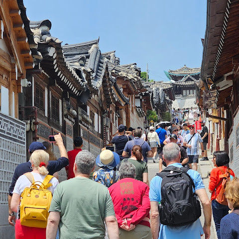 전통 한옥, 즉 한옥으로 가득한 아름다운 지역으로, 마치 시간을 거슬러 올라간 듯한 느낌을 선사합니다. 매력적이고 사진 찍기 좋은 곳이지만, 관광객으로 붐벼 지역 주민들의 일상생활에 지장을 주고 있습니다.