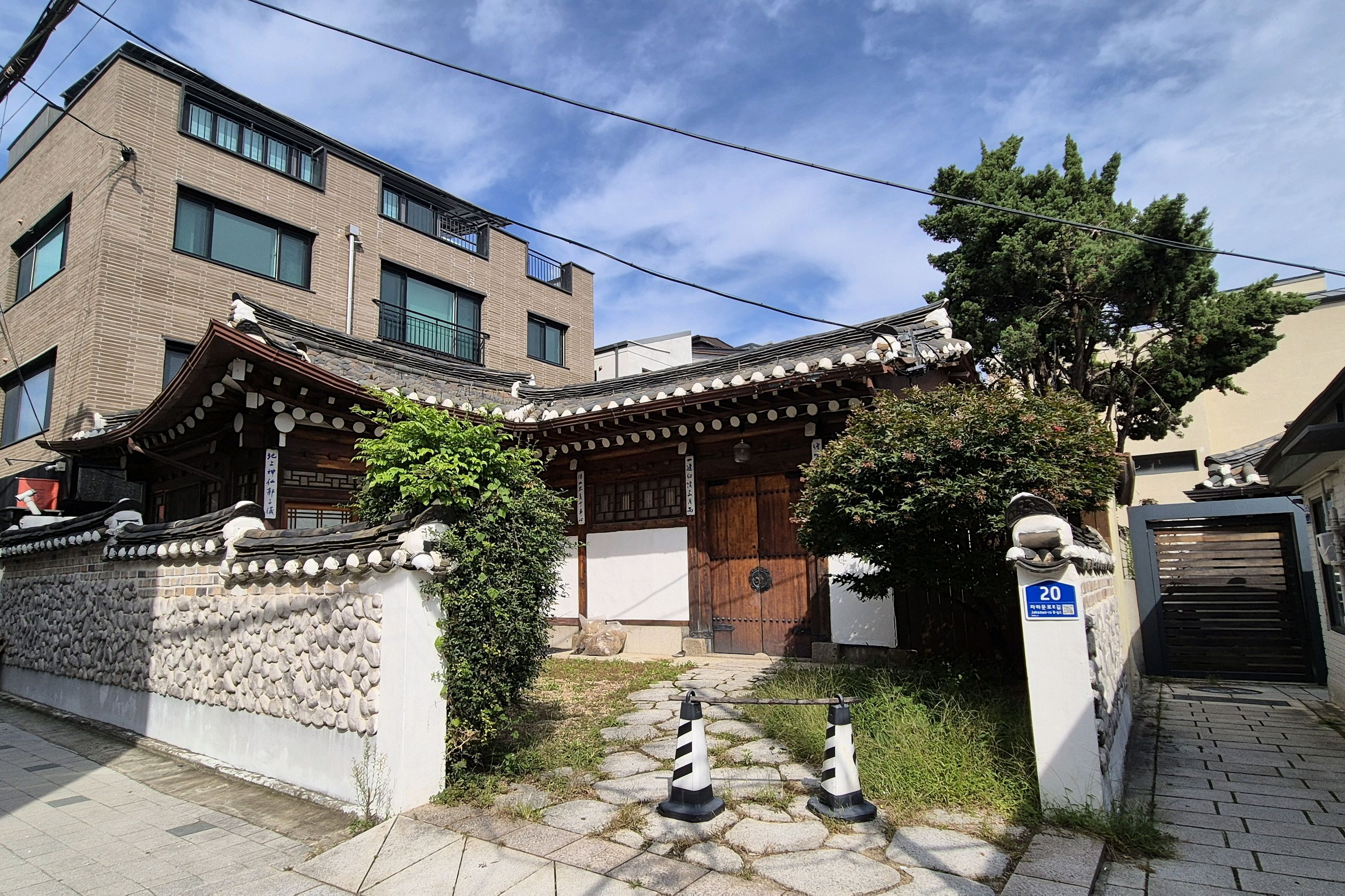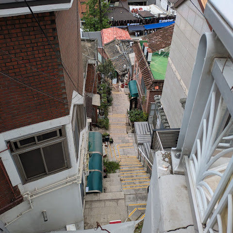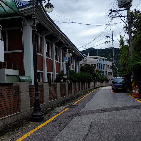 전통 한국식 가옥이 있는 마을의 멋진 지역입니다. 근처에 아주 좋은 상점가도 있습니다.