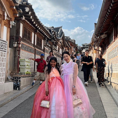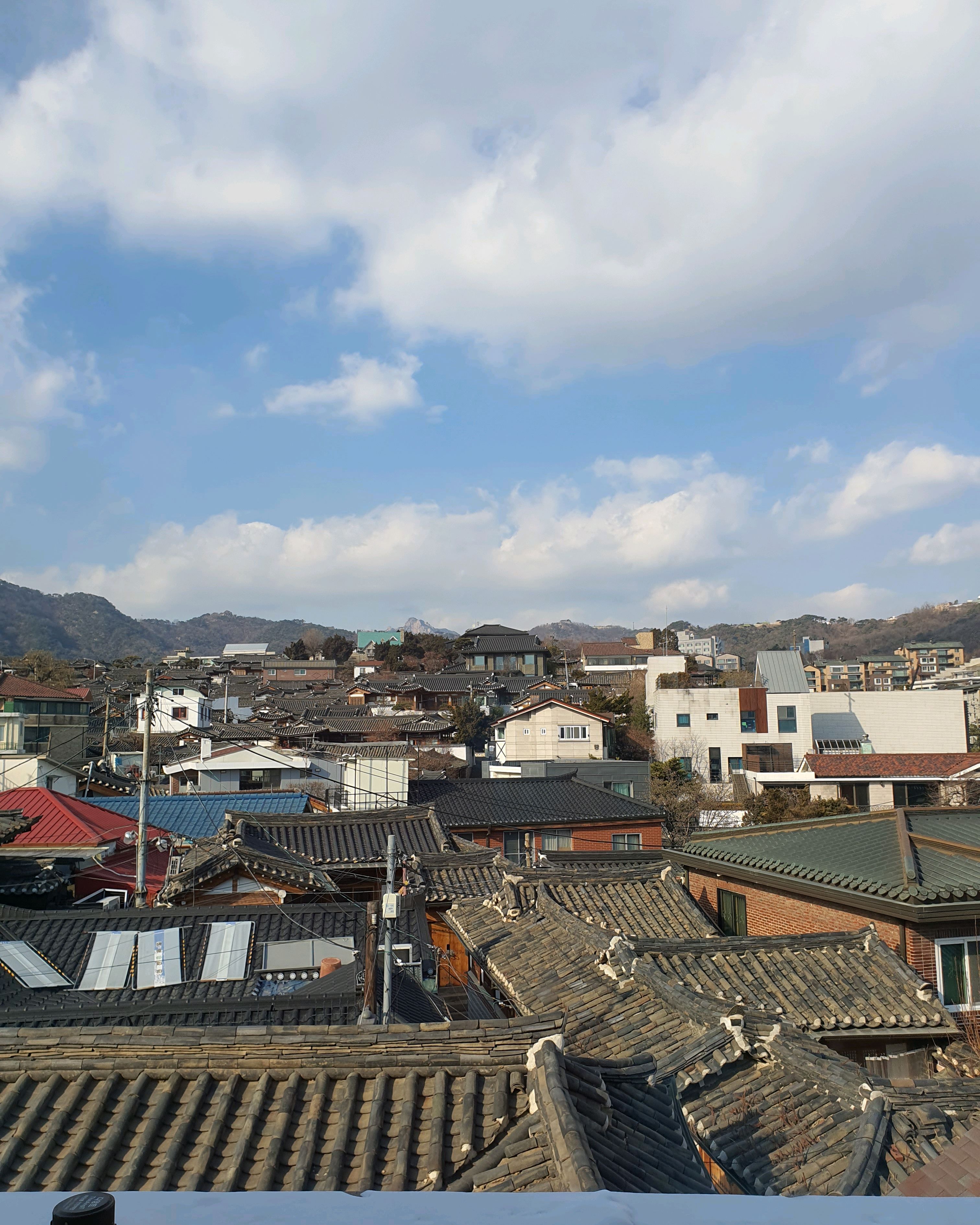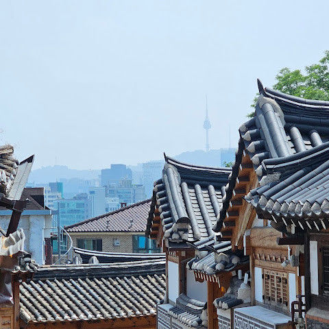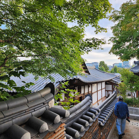 길을 돌아 나오며 기와지붕 위로 번지는 노을을 바라보았다. 따뜻한 빛이 한옥과 현대 건물을 함께 물들이고 있었다. 북촌한옥마을, 그곳에서 나는 시간을 초월한 어깨동무를 보고 왔다.