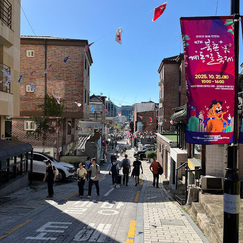 아기자기한 작은 동네예요. 관광객이 많지만 여전히 매력적인 곳이에요. 놓치지 마세요. 조용한 골목길을 몰래 엿볼 수 있고, 특히 북촌 커피 357이라는 작은 커피숍은 정말 아늑해요! 😍