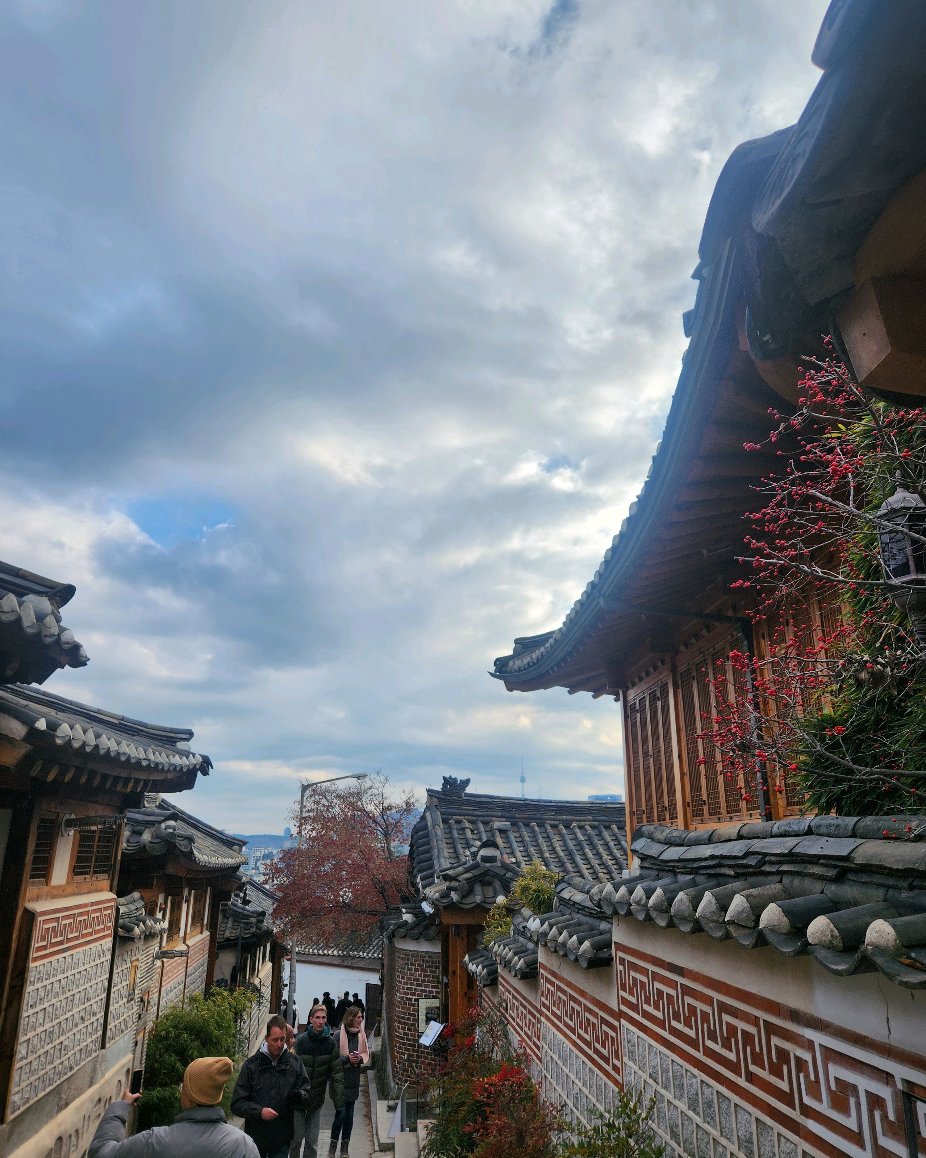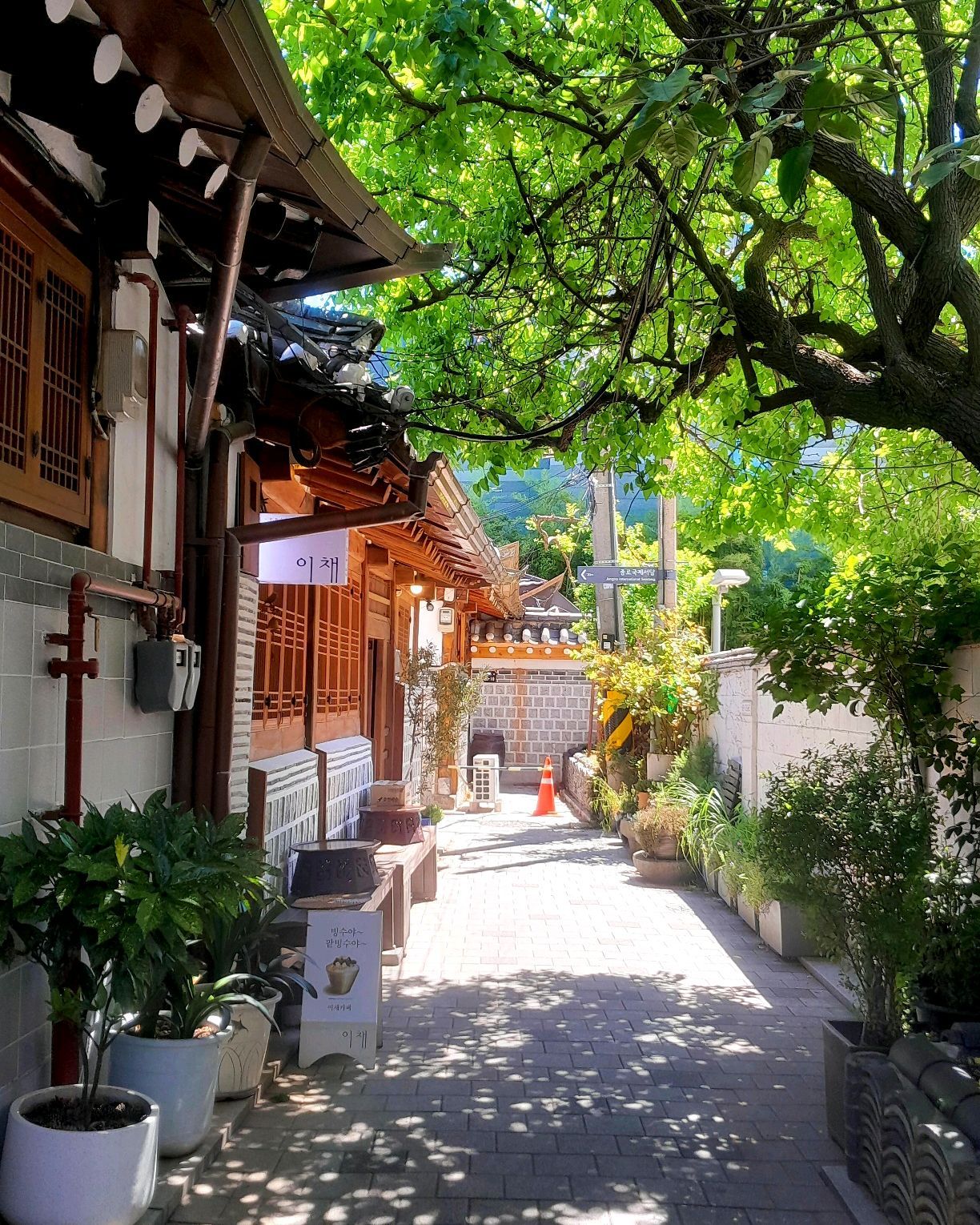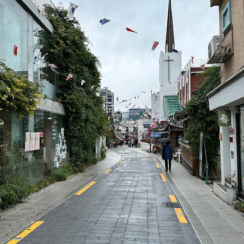 서울의 오래되고 아름다운 마을, 카페와 레스토랑이 많아요. 다행히 저희는 맑은 날에 갔어요.