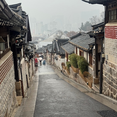 길을 돌아 나오며 기와지붕 위로 번지는 노을을 바라보았다. 따뜻한 빛이 한옥과 현대 건물을 함께 물들이고 있었다. 북촌한옥마을, 그곳에서 나는 시간을 초월한 어깨동무를 보고 왔다.