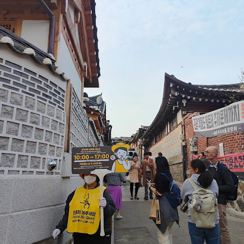 부촌 한옥마을에는 많은 관광객들이 몰려들어 큰 소음을 냈습니다. 이곳은 주택가이므로 소음을 최소화하는 것이 좋습니다.