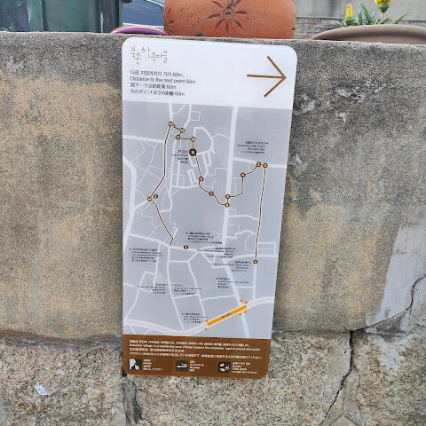 안국역 → 북촌문화센터 → 가회동 11번지 → 한상수자수공방 → 가회민화공방 → 북촌생활사박물관 '오래된 향기' → 안국동 윤보선가 → 안국역