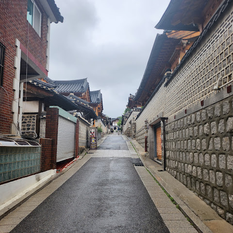 산책하기 좋은 곳이에요. 전통 한옥들이 정말 멋져 보였어요. 하지만 아쉽게도 안으로 들어갈 수는 없어요.