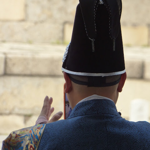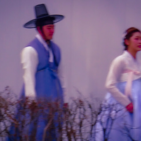 같습니다.더운 날씨에도 한복을 입은 외국관광객