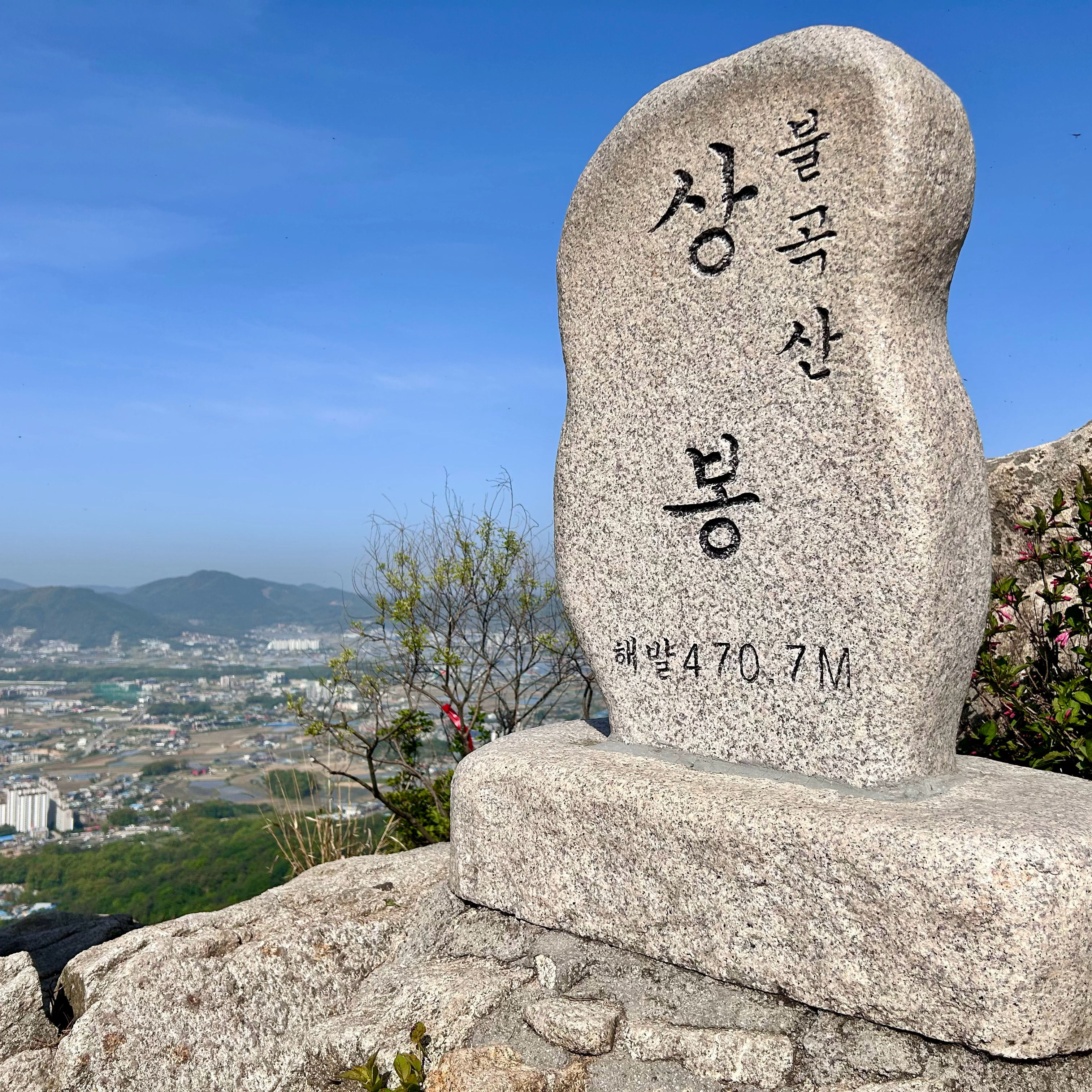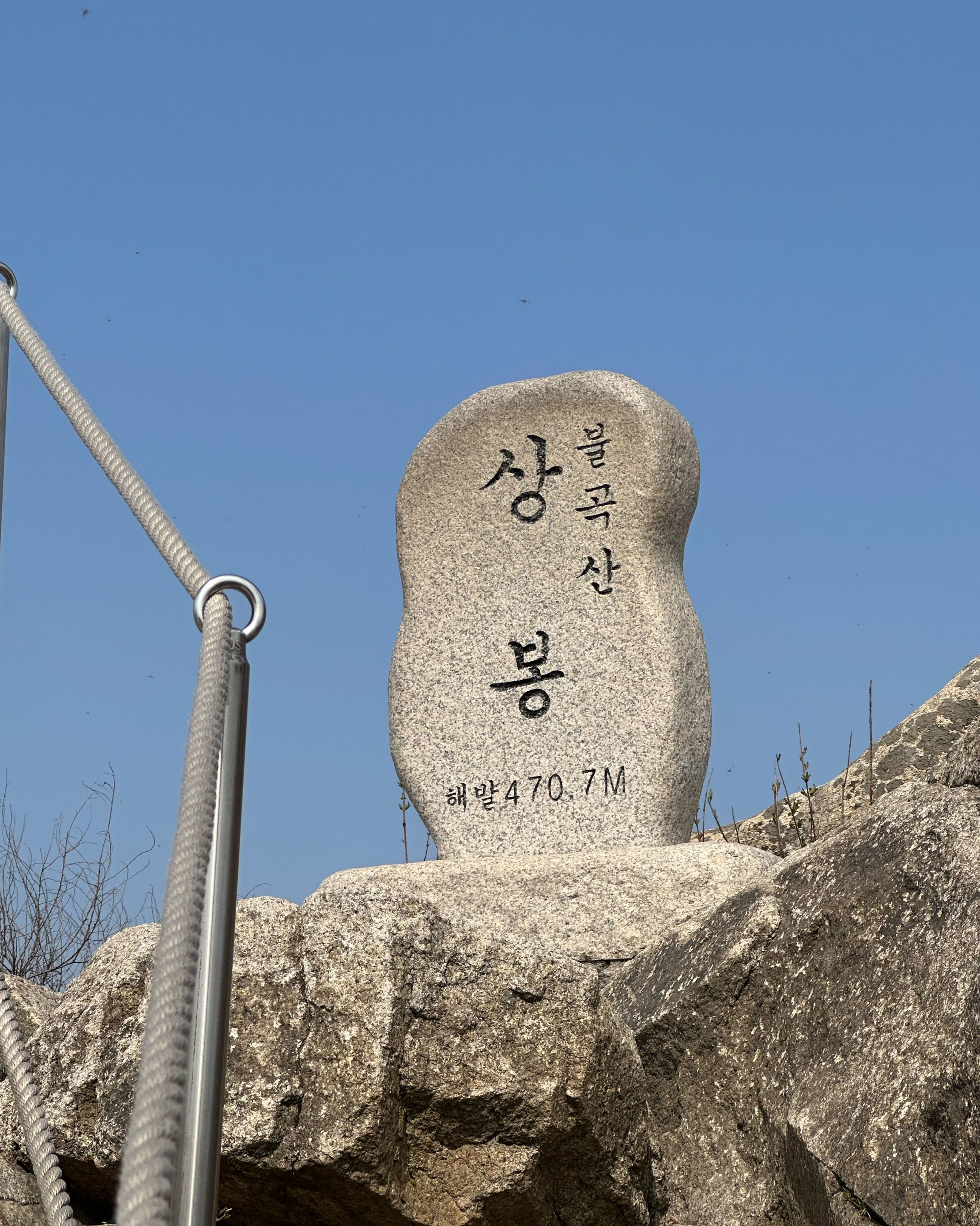 백화암에서 오르면, 불곡산 정상 상봉까지 1키로가 안되는데, 정상석에 적힌 470.7m 정도의 높이에도 불구하고, 사방이 다 보이는 360도 뷰를 자랑합니다. 돌산이라 다소 거칠고 험하지만, 정상에서의 뷰가 정말 멋지네요.