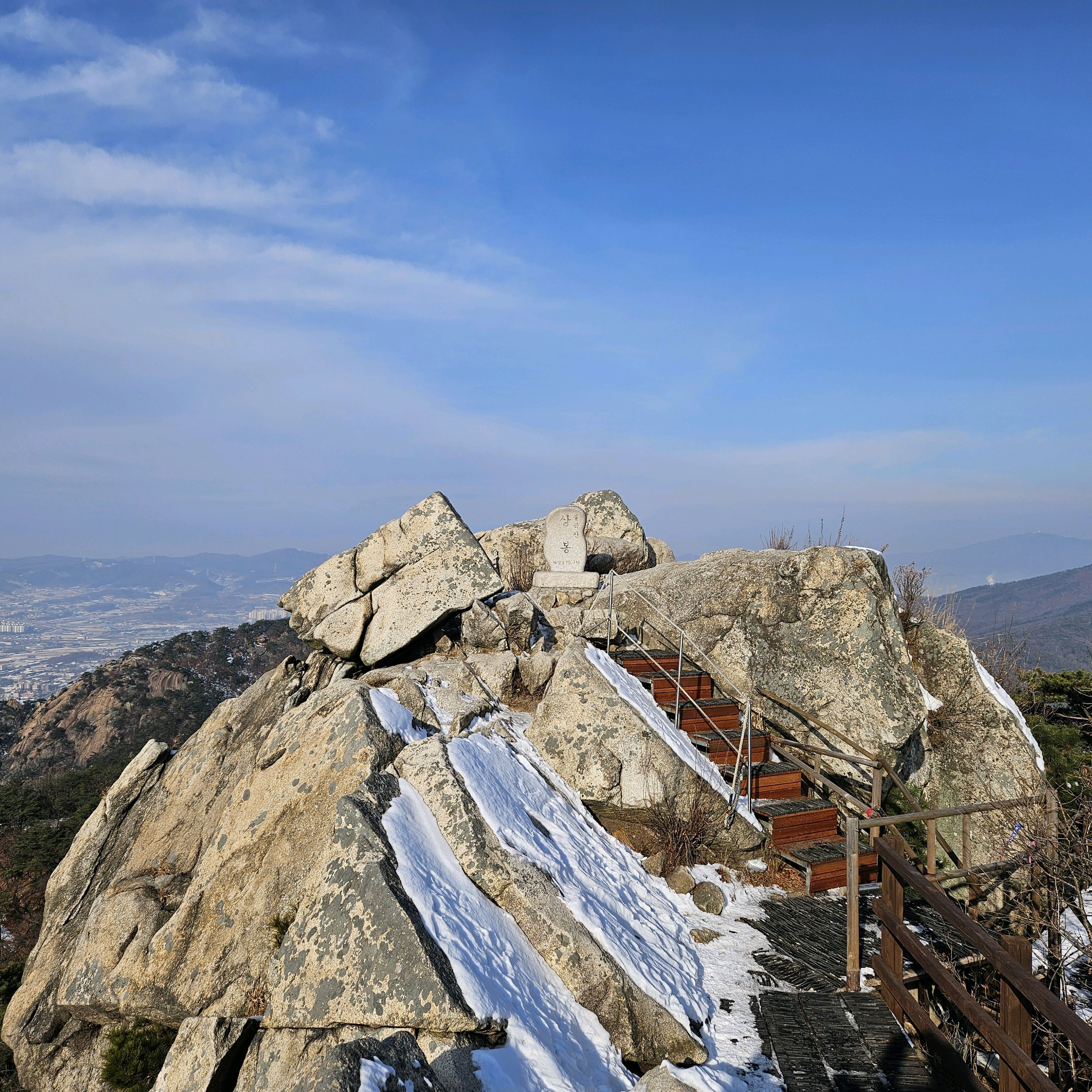 주말은 시청 주차비가 무료라 굳ㅋ 등산로 입구 근처 개방화장실 들른 후 출발! 초반부터 적당한 경사, 계단, 평지가 계속 번갈아 가며 나타나기 때문에 자연스럽게 페이스 조절이 된답니다. 중간이 꽤 내려갔다가 다시 올라가는 구간에선 힘이 빠지지만, 그래도 1시간 반만에 상봉 도착! 상봉 바로 아래에서 상봉까지 짧지만 꽤 가파르니 조심하셔야해요ㅋ