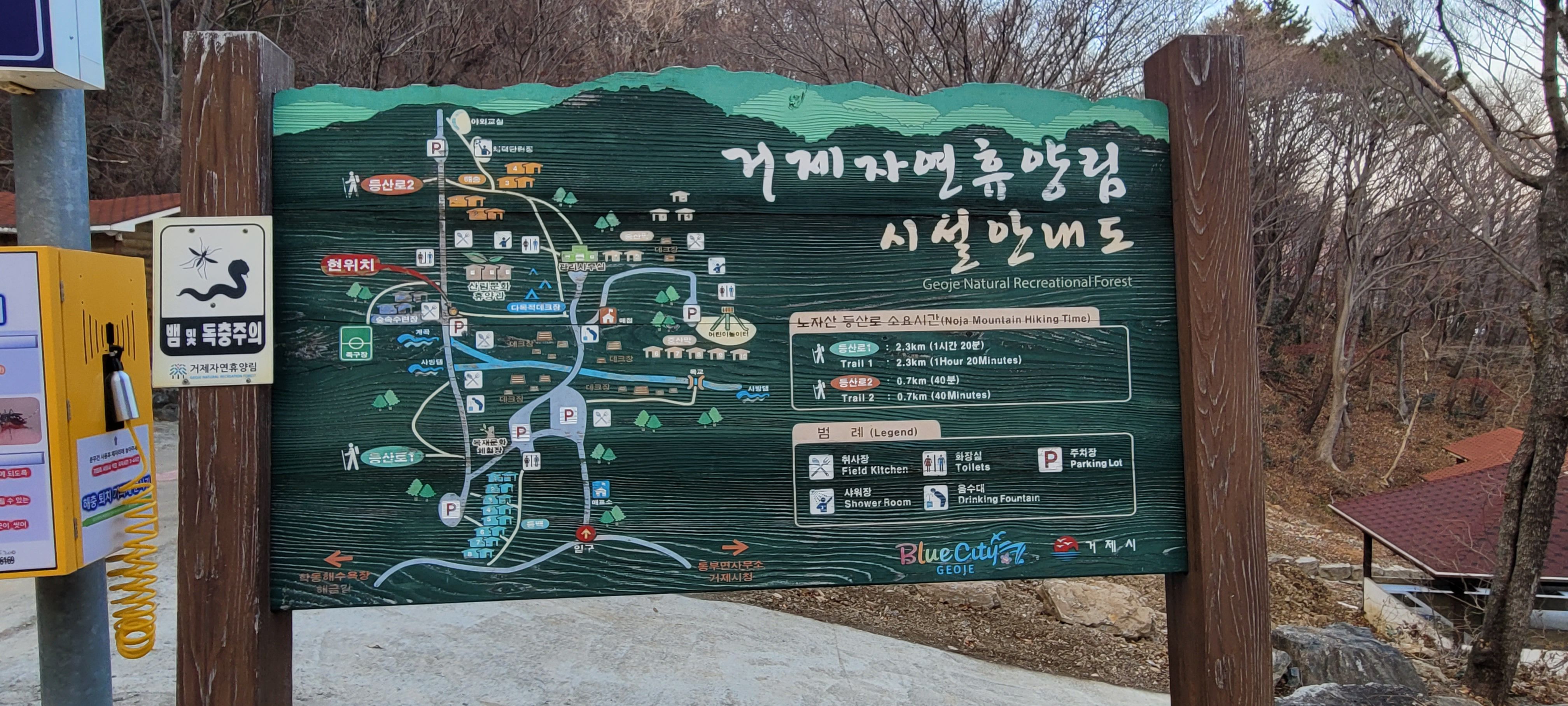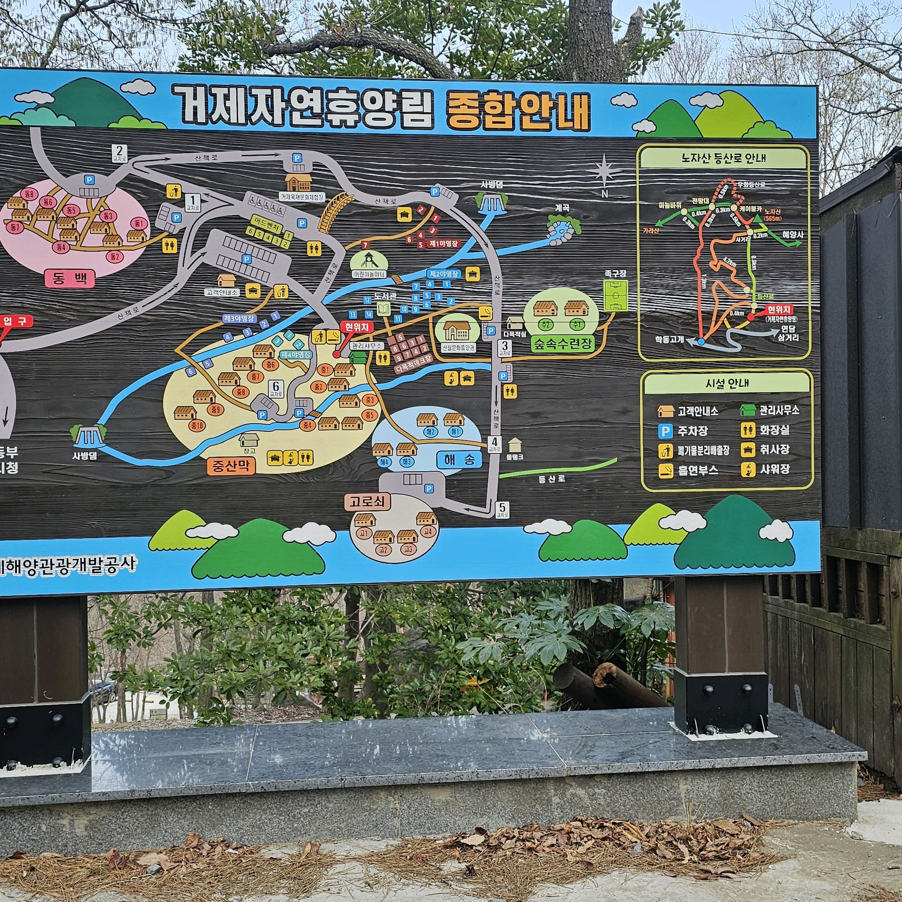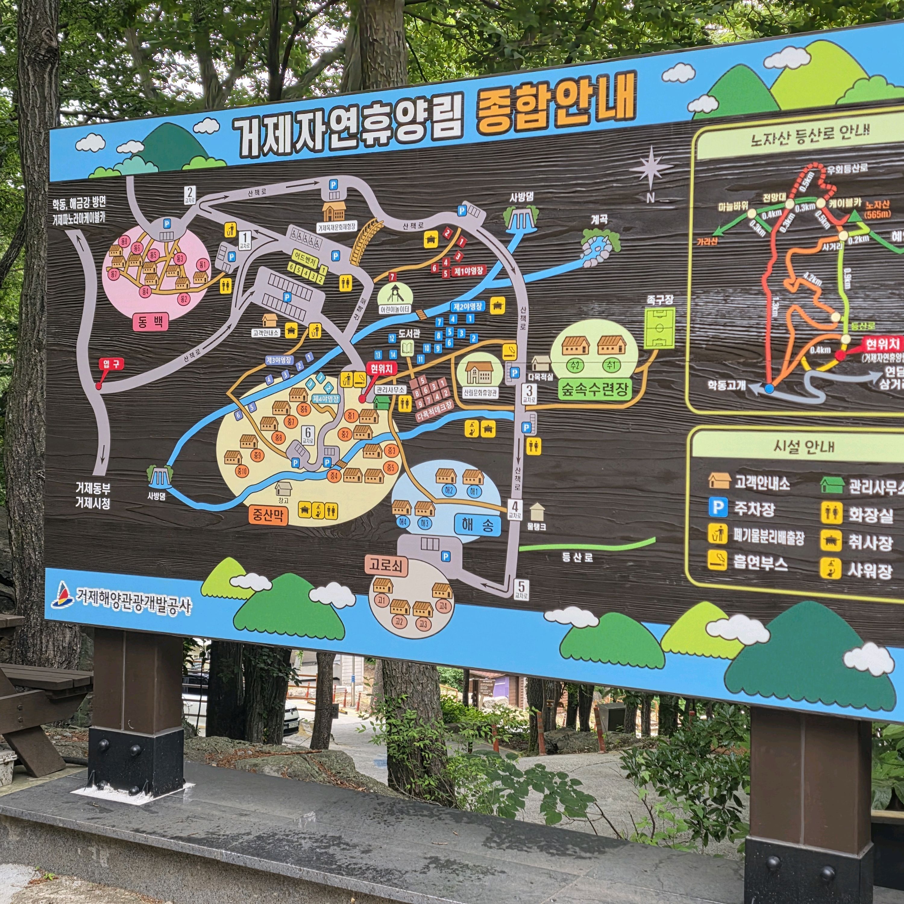 많은 수의 야영태크와 숲속의 집 및 산림문화휴양관으로 구성된 거제자연휴양림은 말 그대로 가족단위 휴식과 힐링하기 적당한 곳입니다. 아이와 함께 할 수 있는 모험시설까지 잘 갖춰져 있고 거제파로라마 케이블카가 위로 지나 갑니다. 노자산 등산로를 통해 정상까지 쉽게 갈 수 있어 아주 좋습니다. 시설은 조금 노후된 느낌을 주지만 이용에 불편함은 없었습니다.