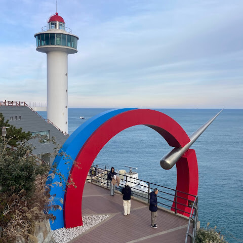 이곳은 부산 영도의 최남단입니다. 영도 공원 열차를 타고 섬 곳곳을 돌아볼 수 있으며, 두 곳의 하차 지점에서 탐험을 즐길 수 있습니다. 돌아오면 다음 열차를 탈 수 있습니다. 좌석을 놓칠까 봐 걱정하지 마세요. 해당 지역이 혼잡할 경우 공원에서 추가 투어 버스를 운행합니다.