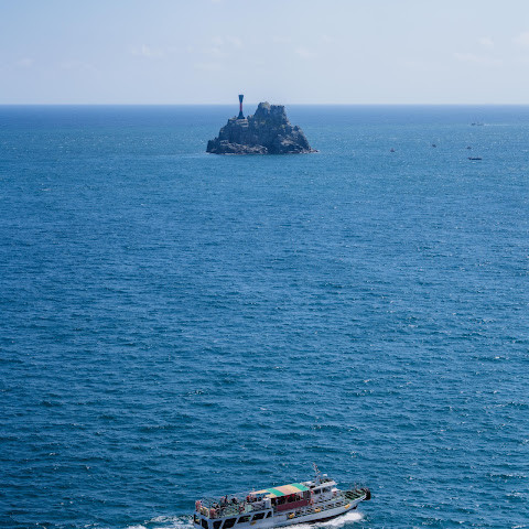 절벽과 해안선은 아름다우며, 사찰, 등대, 심지어 닻까지 있습니다! 계단을 통해 등대 꼭대기까지 올라갈 수 있습니다.