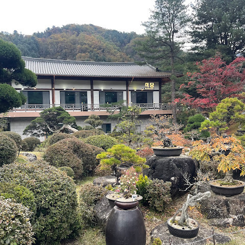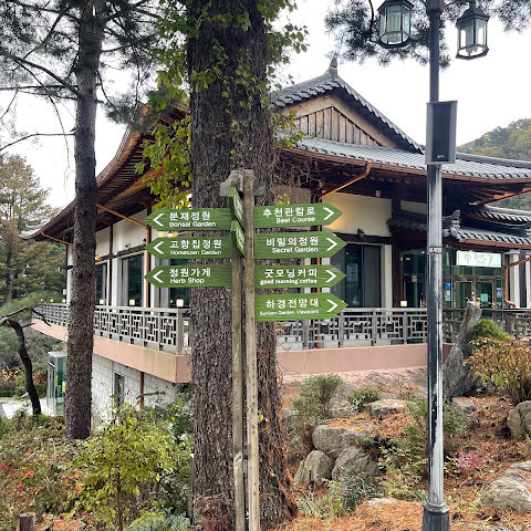 정원은 자연 요소와 예술적 감각이 아름답게 어우러진 조경 디자인의 걸작입니다. 천 년 된 웅장한 밀레니엄 주니퍼에 매료되었습니다. 아름다운 꽃과 식물들, 그리고 매력적인 다리와 정자로 장식된 고요한 시냇물과 연못. 예배당, 서양식 별장, 한옥 등 독특한 건축물들이 산책에 더욱 매혹적인 분위기를 더했습니다.