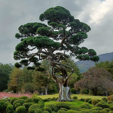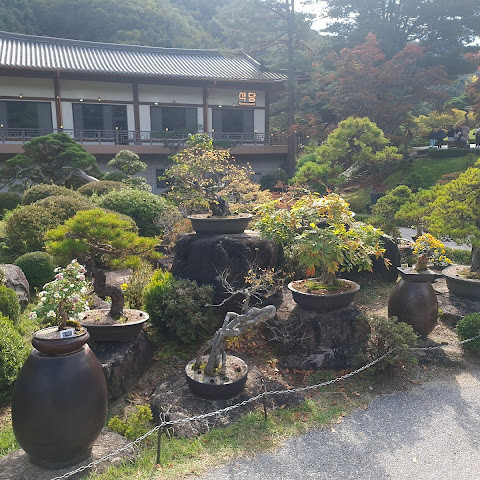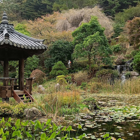 정원은 자연 요소와 예술적 감각이 아름답게 어우러진 조경 디자인의 걸작입니다. 천 년 된 웅장한 밀레니엄 주니퍼에 매료되었습니다. 아름다운 꽃과 식물들, 그리고 매력적인 다리와 정자로 장식된 고요한 시냇물과 연못. 예배당, 서양식 별장, 한옥 등 독특한 건축물들이 산책에 더욱 매혹적인 분위기를 더했습니다.