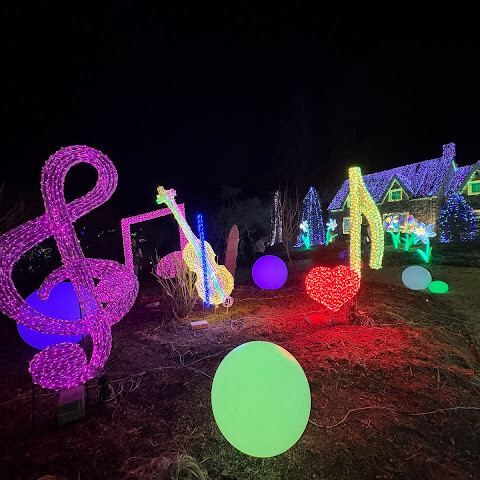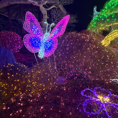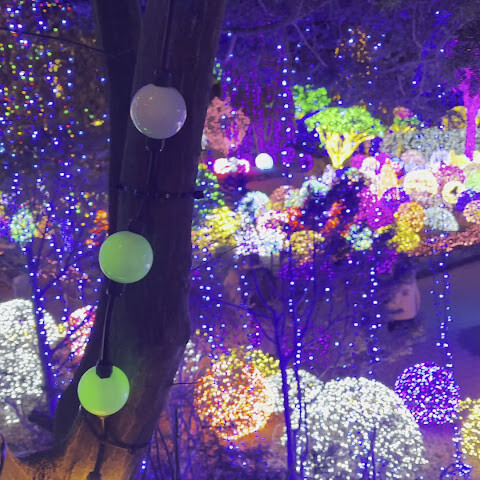 조명 장식이 가득한 멋진 정원이네요! 밤에는 정말 아름답고 화려할 것 같아요!