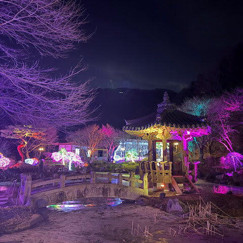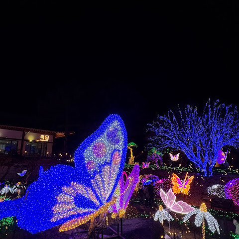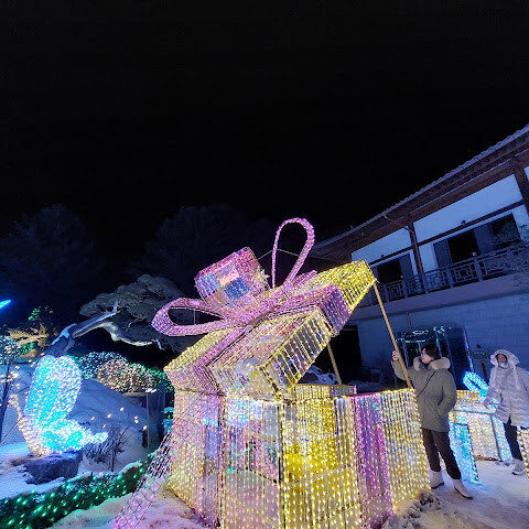 닭갈비 먹으러 춘천 왔다가 가는 길에 있길래 몇년전 여름에 들렸던 기억이 나서 찾아보니 동절기라 조명으로 이것저것 꾸민 정원 컨셉이래서 가봤거든요~ 볼만한 것 같아요! 가족들이랑 일몰 전에 와서 주차장에서 잠깐 쉬다가 5시 30분 이후에 들어가니 밝을때, 어두울 때 다 찍을 수 있었어요~! 역시 조명은 어두울 때 더 예쁘긴 하네요~! 잘 구경했습니다!😁