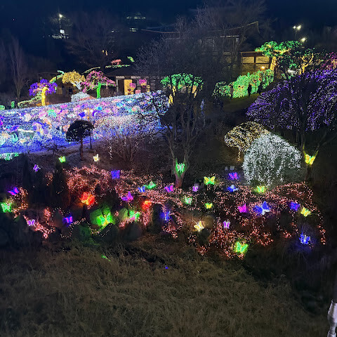 1월 첫째 주, 겨울에 갔습니다. 클룩에서 여행 패키지를 예약했고, 여기가 마지막 목적지였어요. 겨울에는 꽃이 피지 않고 잎도 떨어지기 때문에 모든 것을 조명으로 덮어놓더라고요. 경치가 아주 훌륭하진 않았지만, 아이들에게는 재밌을 것 같았습니다. 제 생각엔 이곳의 진짜 아름다움은 다른 계절에 있는 것 같아요.