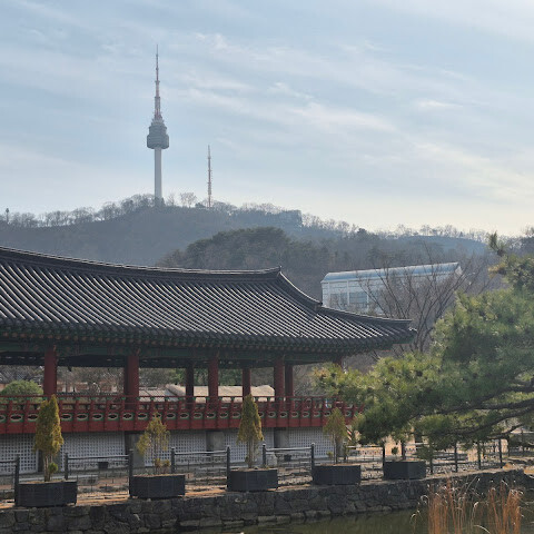 ⛩️ 고풍과 현대의 조화: 가장 인상적인 풍경은 소박한 기와지붕 앞에 서서 올려다보는 현대적인 남산골 타워입니다. 한 프레임 안에 '고풍과 현대'가 어우러진 모습이 남산골 한옥마을만의 독특한 매력입니다. 건물 자체보다도 시간과 공간이 뒤섞인 듯한 분위기가 더욱 마음을 사로잡습니다.