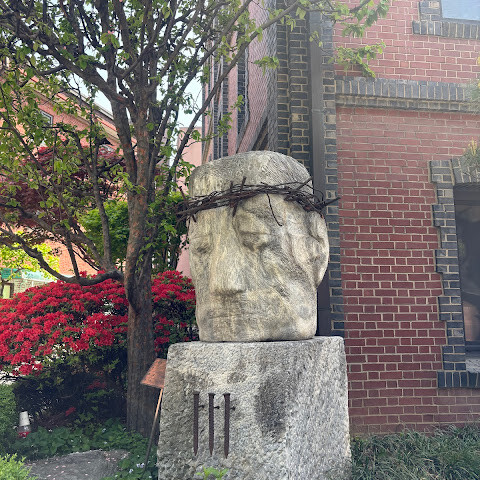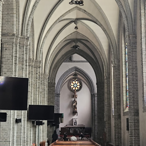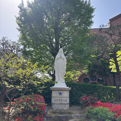 아름다운 가톨릭 성당이었어요. 한국인과 외국인 모두 고해성사를 위해 긴 줄을 서 있는 모습이 인상적이었습니다. 분위기가 매우 경건했어요. 무릎 꿇는 자리가 없는 점이 특이했습니다(미국 가톨릭에서는 흔하지 않은 점이죠). 모든 예식은 한국어로 진행됩니다. 전통 가톨릭에서는 영성체를 손으로 받는 것이 일반적이지만, 혀로 받고 싶어하는 경우에도 가능합니다(혀를 내밀면 공손하게 영성체를 받을 수 있습니다).<br><br>화장실은 성당 밖에 있고, 고해성사는 청소년관 지하 1층에 있습니다.