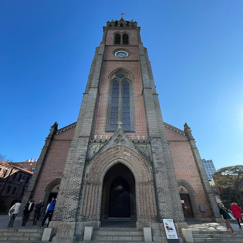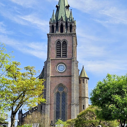 1898년에 완공된 이 건물은 한국 최초의 신고딕 양식 건축물이자 한국 가톨릭 공동체의 중심지입니다. 서울의 번화한 쇼핑가에 위치한 이 건물은 위풍당당한 붉은색과 회색 벽돌 구조와 45미터 높이의 탑이 특징입니다.<br>입장료: 무료<br>운영 시간: 일반적으로 오전 9시부터 오후 9시까지 개방 (월요일은 관광객 휴관)<br>영어 미사: 매주 일요일 오전 9시