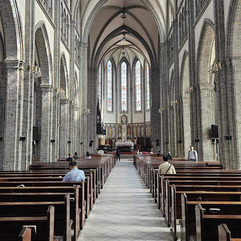 명동성당에 다녀왔는데 정말 좋았어요.<br><br>명동의 번화한 지역 한가운데에 있는데도 분위기가 평화롭고 고요했어요. 건축물도 너무 아름다워서 잠시 멈춰 서서 생각에 잠기거나 조용히 시간을 보내기에 정말 좋은 곳이에요.<br><br>명동에 오시면 꼭 한번 방문해 보세요.