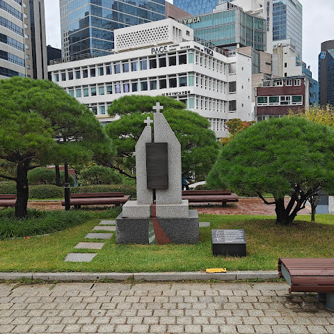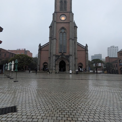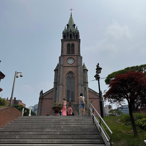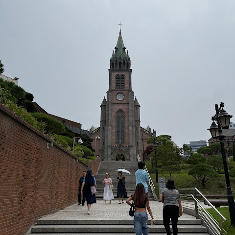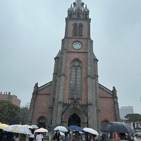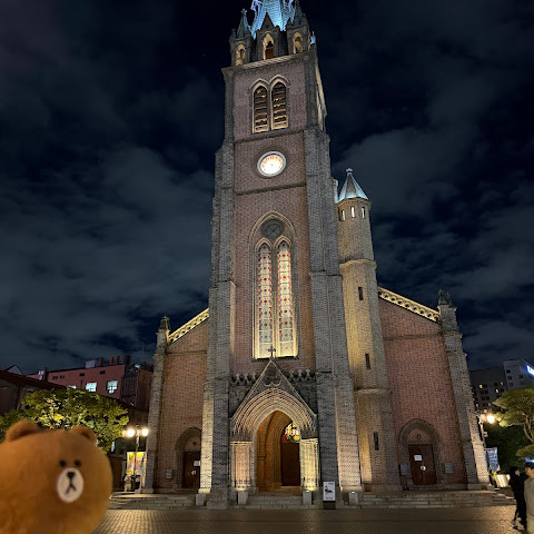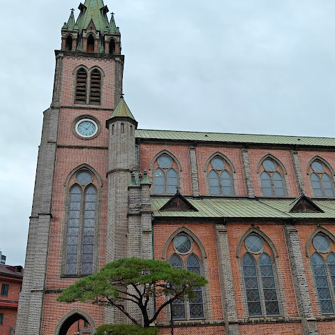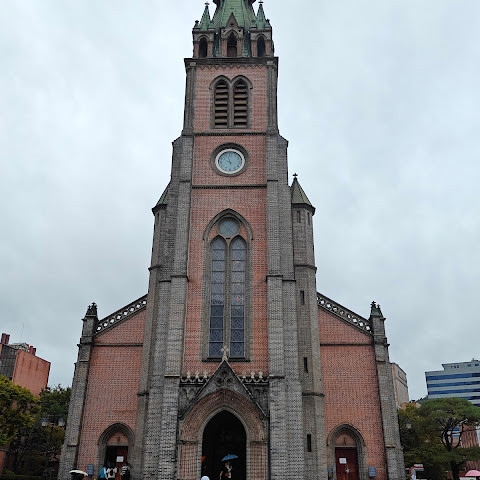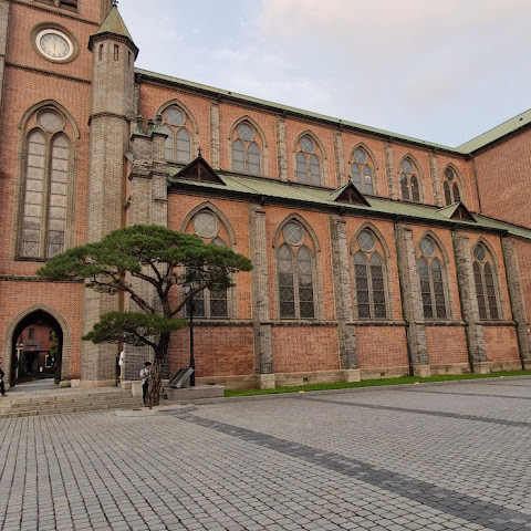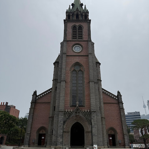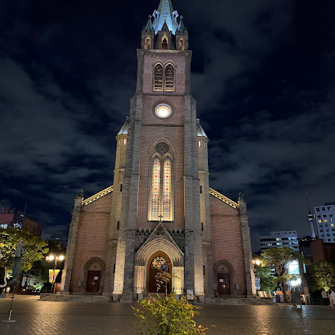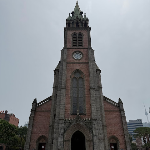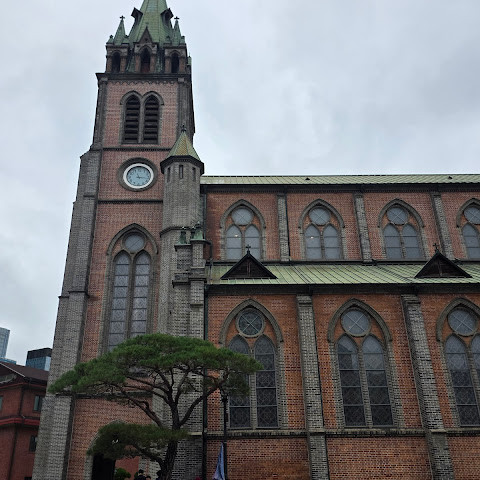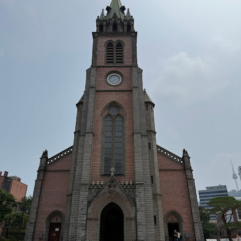 명동에서 가장 번화한 지역에 위치한 이 교회는 넓고 편안해서 걸어 다니거나 앉아 있기 좋습니다. 건물이 특별히 인상적이지는 않지만, 그래도 꽤 아름답습니다. 예배 시간에는 교회에 들어갈 수 없습니다.