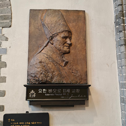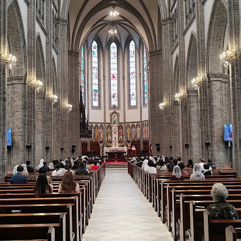 한국에서 가톨릭 성당을 보는 건 재밌네요. 꽤 소박하고 규모도 크지 않지만, 그래도 기분은 좋네요. 다만 표지판이 잘 안 보이고 입구를 찾기가 좀 까다롭다는 게 흠입니다. 1층에 쇼핑몰이 통째로 들어와 있어서 좀 충격적이네요.