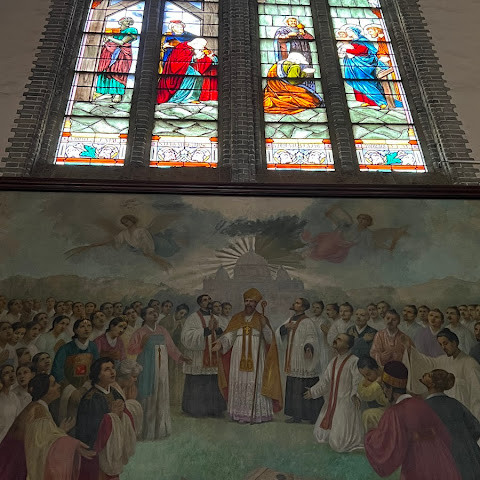 지하 성소: 순교한 아홉 명의 성인 유해가 안치되어 있습니다. 유리벽으로 된 입구를 통해 조용히 경배할 수 있습니다.