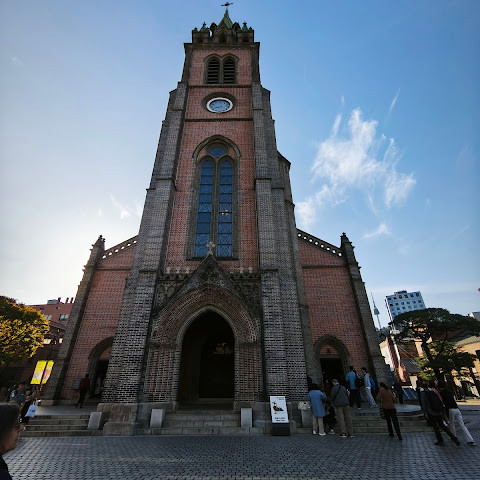 한국에서 가톨릭 성당을 보는 건 정말 흥미롭네요. 꽤 소박하고 규모도 크지 않지만, 그래도 기분은 좋네요. 다만 표지판이 잘 안 보이고 입구를 찾기가 좀 까다롭다는 게 흠입니다. 1층에 쇼핑몰이 통째로 들어와 있어서 좀 충격적이네요.