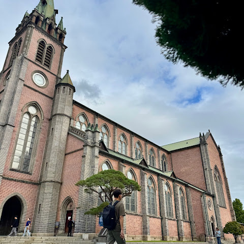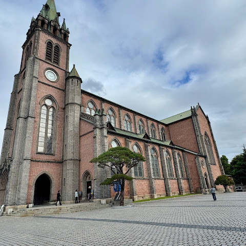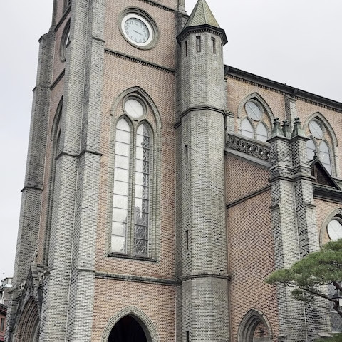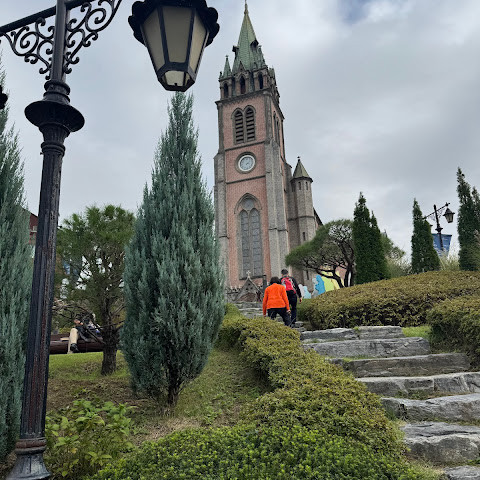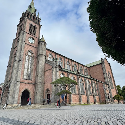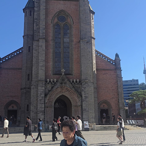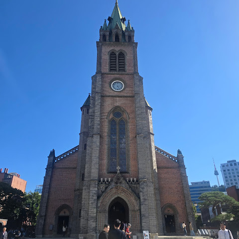 명동에서 가장 번화한 지역에 위치한 이 교회는 넓고 편안해서 걸어 다니거나 앉아 있기 좋습니다. 건물이 특별히 인상적이지는 않지만, 그래도 꽤 아름답습니다. 예배 시간에는 교회에 들어갈 수 없습니다.