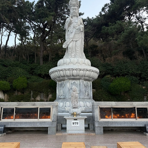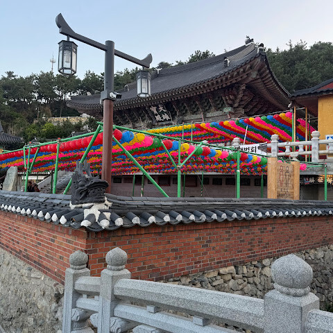 한국에서 가장 아름다운 사찰이라고 불리는 데에는 이유가 있습니다. 사찰은 믿을 수 없을 만큼 아름답고 평화로우며, 산을 배경으로 바다를 마주보고 자리 잡은 최고의 위치에 있습니다. 정말 멋진 곳이라 꼭 다시 방문하고 싶습니다.