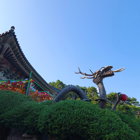 한국에서 가장 아름다운 사찰이에요... 산에 둘러싸여 있고 바다를 마주하고 있어요! 모든 곳이 아름다워요 ~ 어르신들만 빼고요. 어르신들은 걸어 내려가기 조금 힘들 수도 있어요 😥... 그 외에는 모두 꼭 한번 가보시길 추천드려요 👀