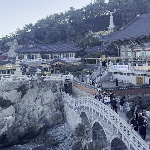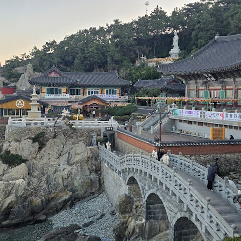 한국에서 가장 아름다운 사찰 중 하나임에 틀림없습니다! 정말 경치가 훌륭하고 이곳에 있으면 마음이 편안해지는 느낌입니다. 파도 소리와 사찰의 고요함이 어우러져 환상적인 조화를 이룹니다. 근처에 계시다면 문화적 관점에서 꼭 한번 방문해 보시길 추천합니다.