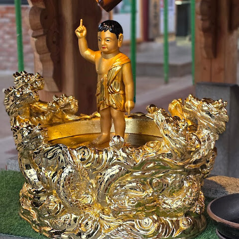 주차장에서 사찰 본당까지, 십이지신 조각상부터 도로 안전을 기원하는 탑까지 수많은 불상과 섬세한 장식들이 가득합니다. 부처님 오신 날(베삭)을 기념하는 아름다운 분수도 눈길을 끕니다. 분수에서는 정화를 위해 불상에 물을 붓습니다.